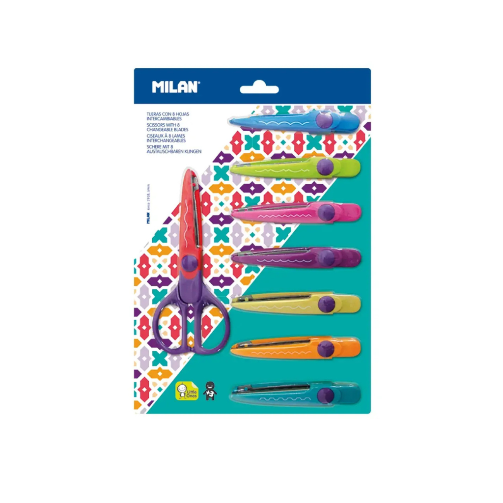 CODIGO: 460054 ESTUCHE TIJERAS ZIG ZAG MILAN CON 8 HOJAS INTERCAMBIABLES DE CORTE DIFERENTE LARGO 16CM (6.2 PULGADAS) BLISTER 8 UNIDADES